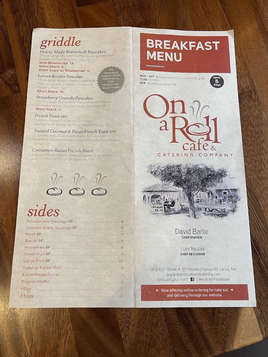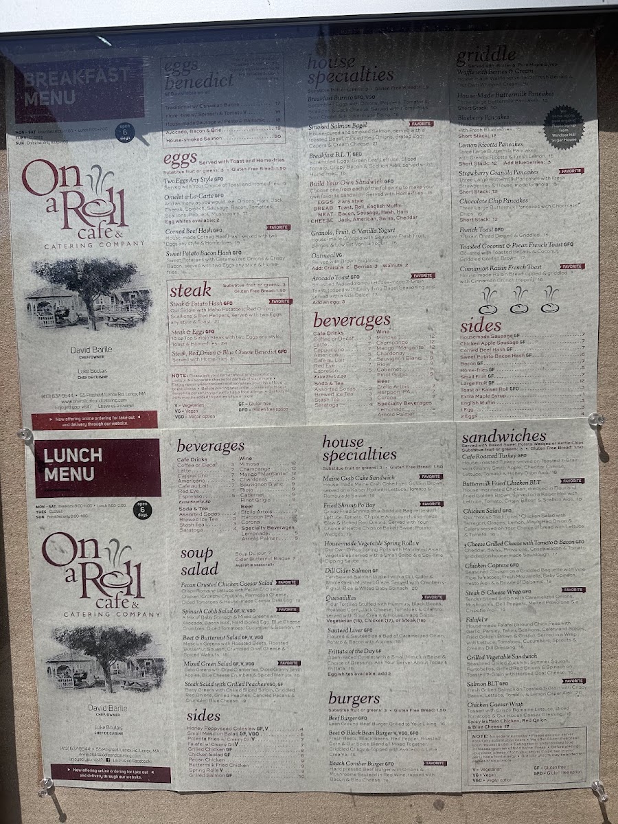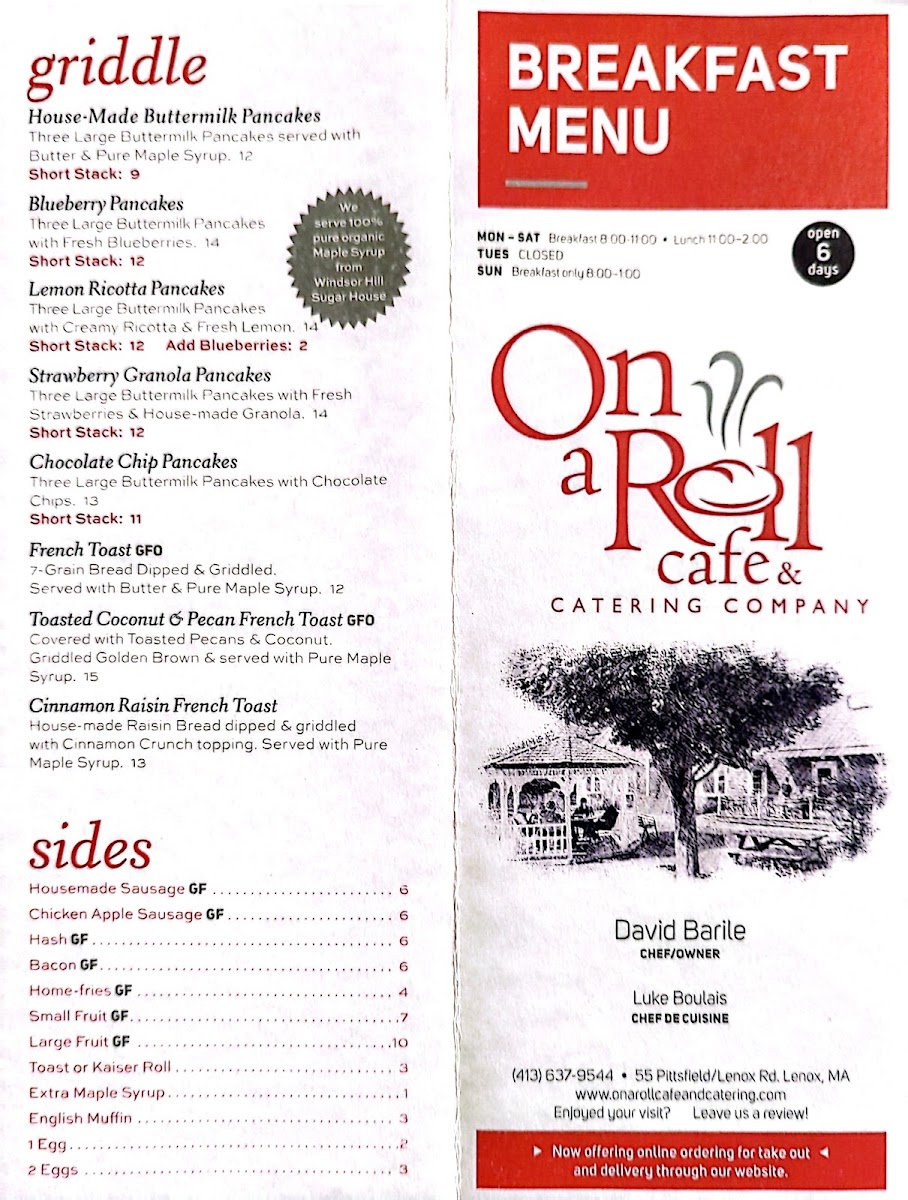 At On A Roll Cafe And Catering Menu, you'll find a variety of mouthwatering options perfect for any craving. Nestled in the heart of Lenox, this cozy spot offers an inviting atmosphere to enjoy freshly made sandwiches, hearty soups, and a range of delectable catering choices. From classic deli favorites to unique twists on comfort food, there’s something to satisfy every taste. Whether you're grabbing a quick bite on the go or planning a special gathering, their menu has you covered with delicious, high-quality options. Take a peek at the thoughtfully crafted offerings, and you'll soon understand why this local gem is a favorite for both casual dining and catering needs.