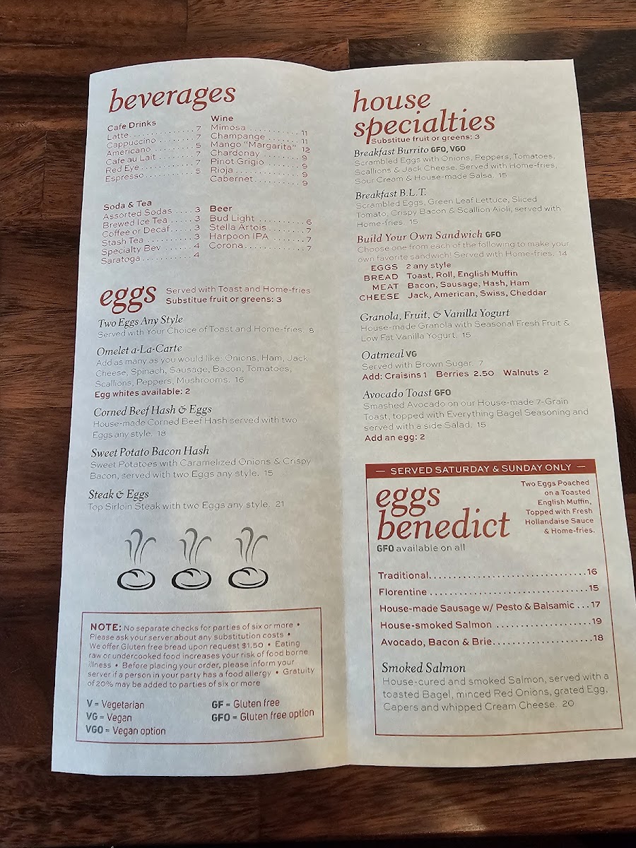 House-smoked Salmon & Poached Eggs on a Toasted English Muffin topped with House-made Hollandaise & served with Home-fries.